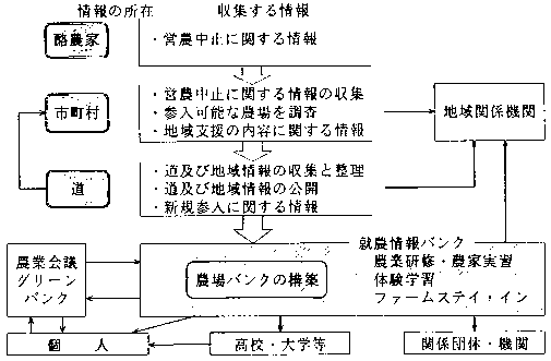 新規参入が一般的になるにつれて、受入システムを整備する必要性がある。新規参入に関する情報の整備や希望者への総合的な研修の場の提供などである。研修中は自己資金の蓄積、最低限持込資金を減少させないための対策が求められる。また、参入者受入の必要性を地域に啓蒙する必要がある。新規参入だけではない農村での就農を希望者する人材を受入ることは様々な面でメリットが考えられる。特に新規参入者の受入れを行うことは農地の流動化、地域社会の活性化などにも効果があると期待できる。研修施設の設置においては財源、人材確保面などの問題から広域的に取り組むことも検討されるべきである。加えて今後は、情報網を整備し担い手の循環に役立てる方向が強く望まれる。