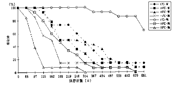 図1MS培地における保存条件がイチゴの生存率に与える影響