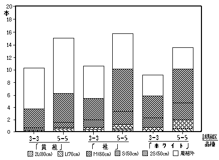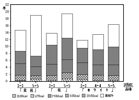 供試品種の中では「ホワイト」が切り花長、一本重が最も大きく、ボリュ一ムのある 切り花となり、規格外が少なかった(表1)。