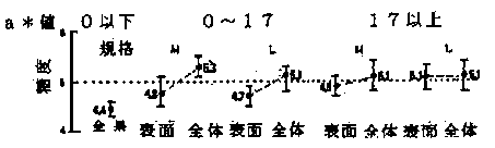 3)糖度は果皮部で果実内部(子室部、隔壁部)に比較して低かったが、熟度が進むにつれその差は縮小した(図2)。酸度は子室部で果皮部及び隔壁部に比較して高かったが、(果実内部酸度)/(果皮部酸度)の比は、催色期以前の果実では1.2程度で比較的一定の値を示した(図3)。