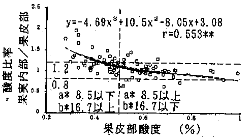 図3 果実内部酸度と果皮部酸度の比