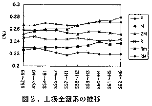 3)土壌の全窒素は堆肥を連用した場合微増傾向であり、浅さのすき込みでは維持傾向であった。有効態リン酸は有機物の連用により増加し、特に堆肥3t区で顕著であった。また交換性カリは有機物連用による増加は認められなかった。一方、交換性カルシウムは有機物を連用しても減少する傾向であった。