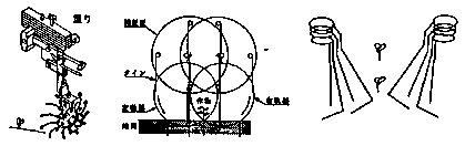 (1)供試除草機構:転動タイン型(左),強制回転タイン型(中央),固定タイン型(右)
