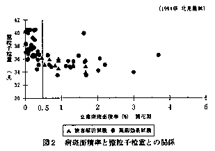 (2)目的とする葉位における1%以下の病斑面積率は、その葉位の発病葉率の1/100の値で推定が可能である。従って春以降の防除は、穂揃い期〜開花期における止葉の病葉率を50%以下にすることを目標とする。