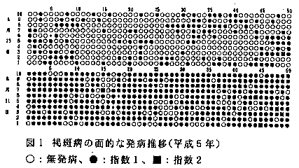 (3)発病株率の急増期では画的にも水平的に広がり、発病指数はほとんどが1のままであった(図1)。