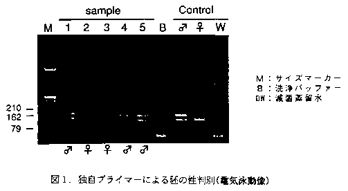 2)牛Y染色体特異的DNAの分離・同定および新プライマーの設計牛の雌雄のゲノムDNAを分析して雌雄により違いの見られる部分を検索し、塩基配列を解析した。解析した配列を基にプライマーを設計し、PCRによる胚の性判別法について検討した。
