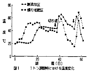 (1)慣行堆肥区の発熱および悪臭の低減は無添加区に比べてすみやかであった(図1、表1)。