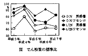 したが、1/2Nでは3〜20%減収し年次間差が大きかった。しかしでん粉価には大差がな