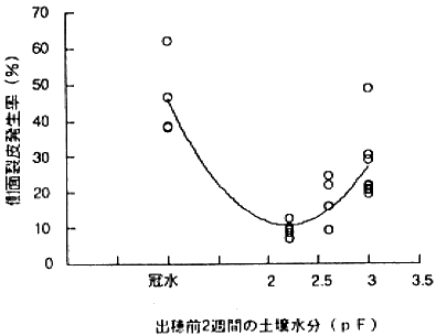 図3 出穂前の土壌水分と発生率