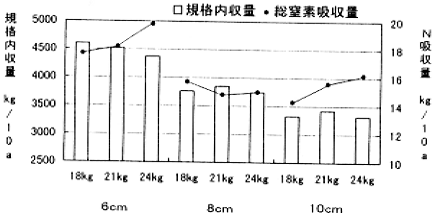 4)肥沃度の低い火山性土でも18㎏/10aの窒素施肥量で高い収量を示し、株間にかかわらずこれ以上の窒素施肥による増収効果はなかった。