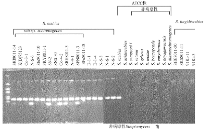 2)S.scabies(subsp.achromogenesを含む)、S.turgidiscabies、および直〜波状胞子鎖緑色色素産生菌を判別するプライマーを設計し、PCRによる遺伝子診断技術を確立した。