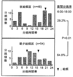 表1 飼料の給与回数が分娩時間帯に及ぼす影響