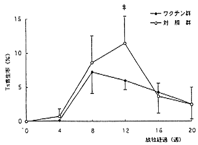 (3)−3)道内におけるTsの多くはC型およびI型が混在していることから、両型(p32)由来の合成ペプチドワクチンを試作し、Ts汚染牧野への放牧による効果試験を実施したがTs寄生率の上昇抑制と貧血防止効果は認められなかった。