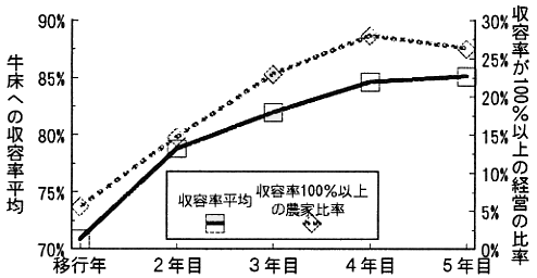 図-1 FS牛舎導入後の牛床への乳牛収容率の推移