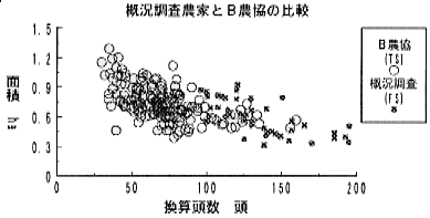 図-3 成牛換算頭数と換算頭数1頭当たり草地面積