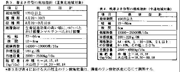 9)春まき作型における栽培指針を作成した(表3)。
