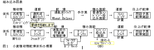 3)収穫乾燥様式:汎用コンバイン+通気床トラック+投込み脱穀(体系Ⅰ)図1