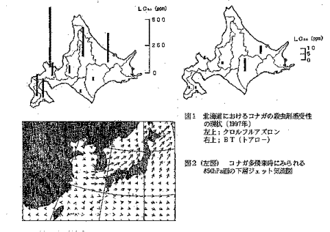 北海道におけるコナガの殺虫剤感受性の現状を把握し、北海道への飛来機構について解析した。