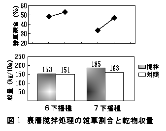 4)早春または夏播種を行う場合の除草法として、早春播種では土壌処理、夏播種では表層撹拌処理の有効性が示唆された(図1)。