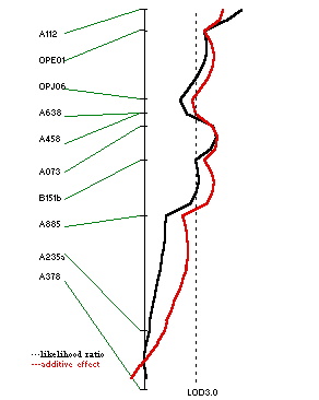 1)連鎖群Gの上方領域の解析と、QTLの存在領域の特定。