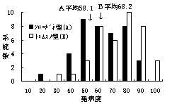 4) F6系統について、連鎖群Gに関するプローブを用いたRFLP解析の結果、全長72.6cMに10個のマーカーが座乗する地図が作製できた。わい化病の発病度に関するインターバルマッピングを試みたところ、RFLPマーカーA073の付近に小さなQTLが1つ、A112の上方にさらに大きなQTLの存在が示唆された。この2つのマーカーを組み合わせてF6系統を群別した結果、発病度の分離はやや大きくなったが、連鎖群GのA112より上方の解析が進み、より効果の大きなマーカーが得られれば、発病度の分離が明瞭となることが期待される。