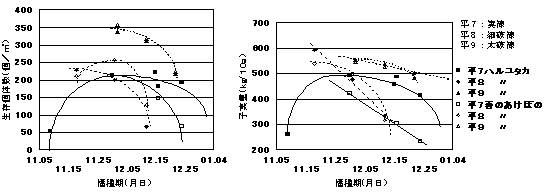 | 播種期 | 卵数(個/㎡) | 被害茎数(本/㎡) |