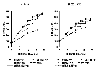 図3.「ハルユタカ」多収年の窒素施肥法試験における