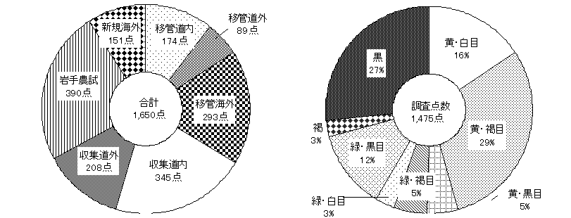 (右側)図2 大豆遺伝資源の種皮色(種皮地色及び臍色)の頻度