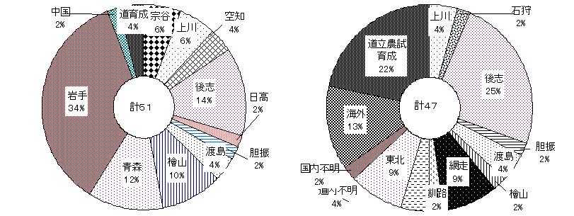 (「移管」は北海道立農業試験場の品種保存から移管した材料、