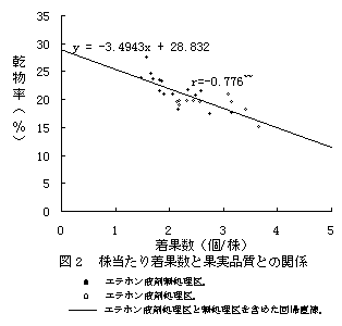 表1 エテホン液剤処理および着果制限と収量(平成9年)