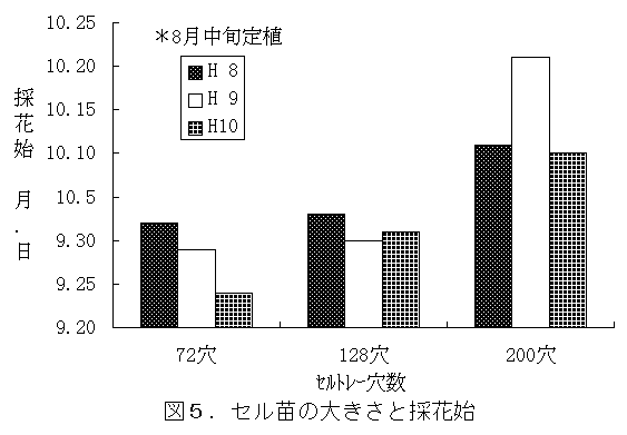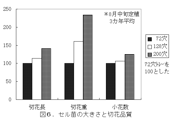 5)使用するセルトレーは穴数が多いものを使用し,小苗( 200穴)で定植した方が切花品質が良好であった。