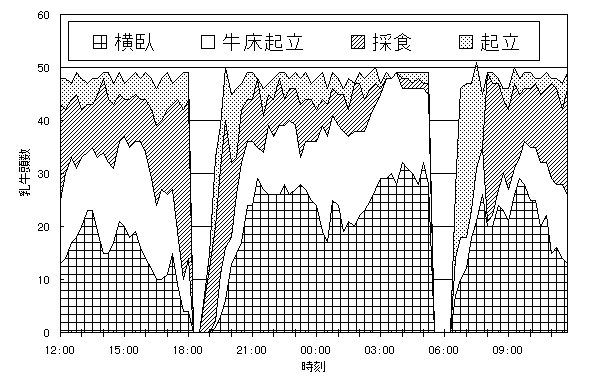 1)この調査結果は、温暖な期間の平均的な乳牛行動である。5.残された問題とその対応
