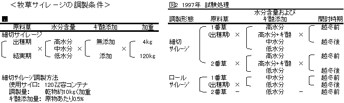 牧草サイレージの水分含量、刈取時期、調製形態および添加剤の利用が、サイレージ発酵およびタンパク質分画に及ぼす影響を明らかにする。2.方 法