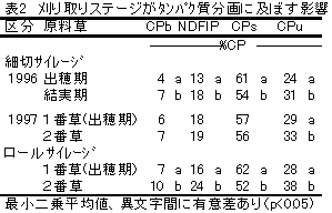 課題の分類:北海道 畜産・草地 畜 産 根釧農試 研究課題名: 牧草サイレージの調製条件とタンパク質分画との関連 (牧草サイレ−ジの蛋白質分解性および発酵品質に関する試験) 予算区分:道費 担当研究室: 根釧農試 研究部 酪農第一科 協力・分担関係:なし 研究期間:平成9〜10年度 |