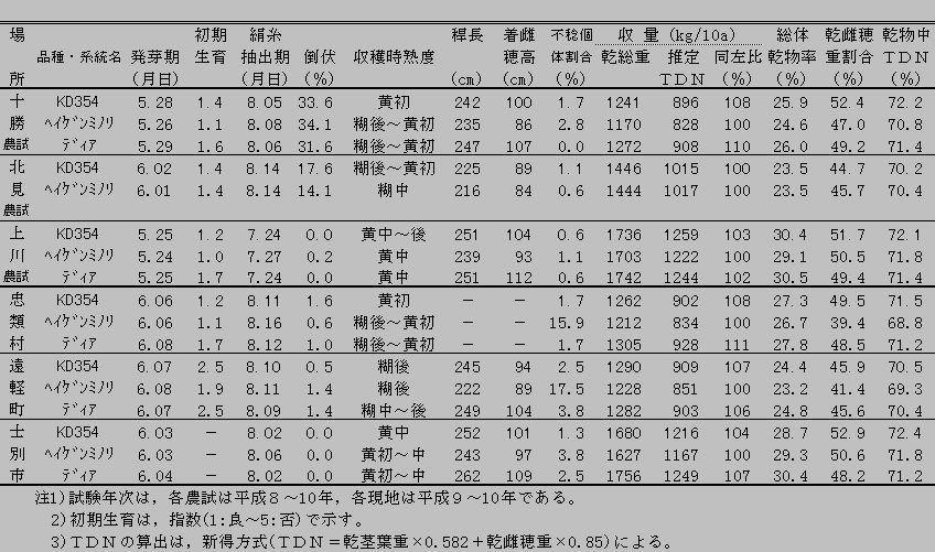 乾総重およびTDN収量は「ヘイゲンミノリ」よりやや多い。乾物中TDN割合は「ヘイゲンミノリ」よりやや高い。