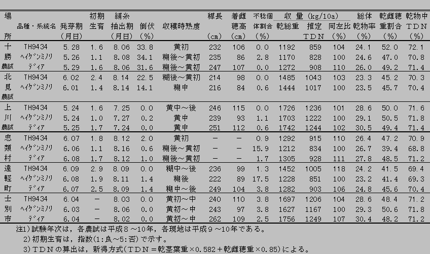 乾総重およびTDN収量は「ヘイゲンミノリ」よりやや多い。乾物中TDN割合は「ヘイゲンミノリ」並である。