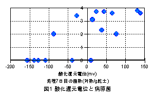 1) 既往の耕種的殺菌法(太陽熱消毒・田畑輪換)を検討した結果、病原菌(F.Or菌)の死滅関与した共通の土壌化学的項目は「還元化」であった。