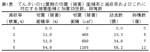 | (2) | 切葉試験による被害解析と被害許容水準の設定:時期別切葉の収量への影響解析 |