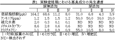1)実験室規模での豚糞堆肥による悪臭抑制効果の検討