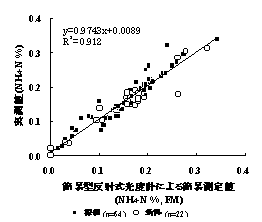 NH4-N含量の測定値と実測値の関係