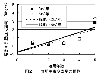1)窒素肥沃度の高い土壌(黒色火山性土や泥炭土)における堆肥の連用限界量と減肥対応。