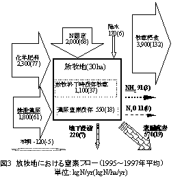 平成7〜9年度の「業務成績書」(北海道立根釧農業試験場 研究部 管理科),既往の成績,文献および実測値から,現状および新技術導入時の窒素フローを算出した。