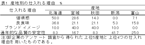 1) 卸企業の米を仕入れる理由は「良食味」が最も多く、次いで「値頃感」、「通年的な品質の安定性」、「ブランドイメージ」があげられ、この理由と産地には密接な関係があった(図1)。