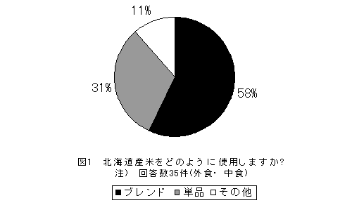 4) 北海道産米はブレンドで57.1%使用されており、単品での使用は31.4%であった。ブレンドの対象銘柄品種はコシヒカリ、ひとめぼれ、あきたこまちの順であった(図2)。