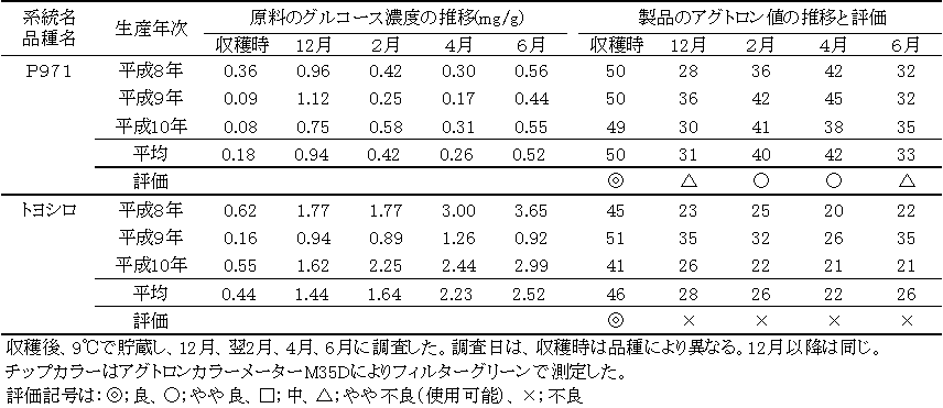| ポテトチップス品質 | 収穫時 | 良 | 良 | ||||||