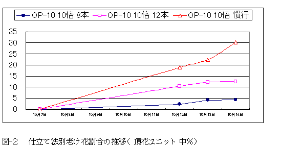 調査:重量、頂花ユニットの小花の全開、半開、蕾、「老け花」数割合