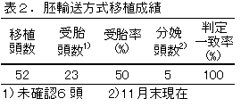 (3)供試胚数30個程度であれば、胚回収から移植までを1日の作業(勤務時間内での対応)として可能と思われた。