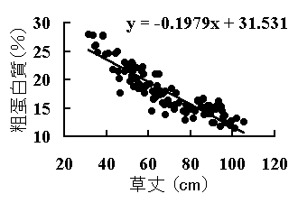 3)アルファルファの施肥量・播種量は栽培基準に従うことが必要であるが,草丈と粗蛋白質含量の関係は地域性や気候による変動が大きいことを配慮しなければならない。