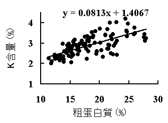 4)アルファルファのCa含量と粗蛋白質含量間には明確な関係は認められなかったが,K含量は生育初期の高蛋白質含量時に高く,2.11-4.20%の範囲にあった。