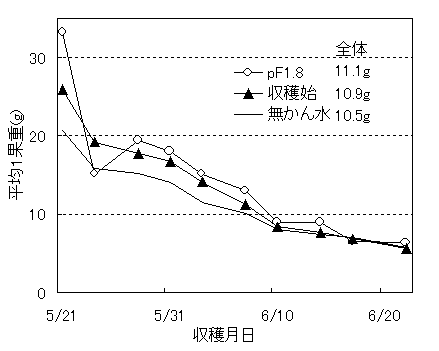 ② 収穫始以前のかん水により平均1果重は増大したが、収穫始直後のかん水によっても平均1果重は増大した(図-3)。